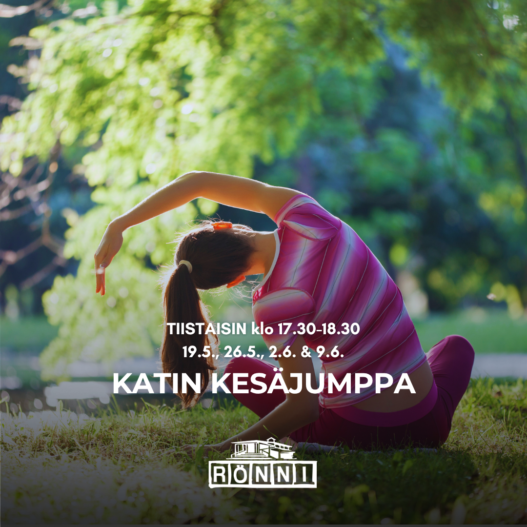 Katin kesäjumppa Rönnillä tiistaisin klo 17.30–18.30 Katin kesäjumpassa tehdään tehokasta, mutta helposti lähestyttävää kehonpainoharjoittelua. Tunnilla käytetään myös kuminauhoja tuomaan vaihtelua ja lisää tehoa liikkeisiin. Sopii kaiken tasoisille liikkujille. Ajankohdat:ti 19.5.ti 26.5.ti 2.6.ti 9.6. Ohjaaja: Kati Ruokola(Hyvinvointia liikkeestä / PT Kati Ruokola) Hinta: 6 € / kerta(maksu ohjaajalle: käteinen, kortti tai ePassi)